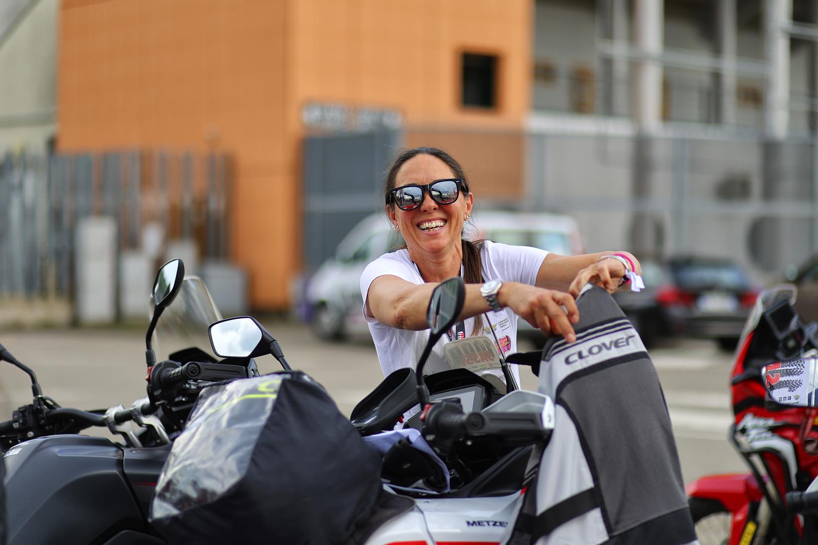 Giannetti è arrivata alla 1000 Sassi 2023 dopo un incontro casuale con Luca Viola al Motor Bike Expo di Verona, dove è stata riconosciuta e invitata all’evento. In sella a una Honda Africa Twin e a una Transalp, condivise in tandem con Mario Ciaccia di Motociclismo, ha definito l’esperienza molto positiva e piacevole. Dal suo punto di vista di pilota abituata a competizioni dure e percorsi estremi, i tracciati della 1000 Sassi possono apparire fin troppo facili, ma ha riconosciuto che il livello è perfettamente adeguato alla media dei partecipanti, promuovendo l’organizzazione con un ideale voto 10 e prenotandosi già per l’edizione 2024 e per la 20.000 Pieghe.