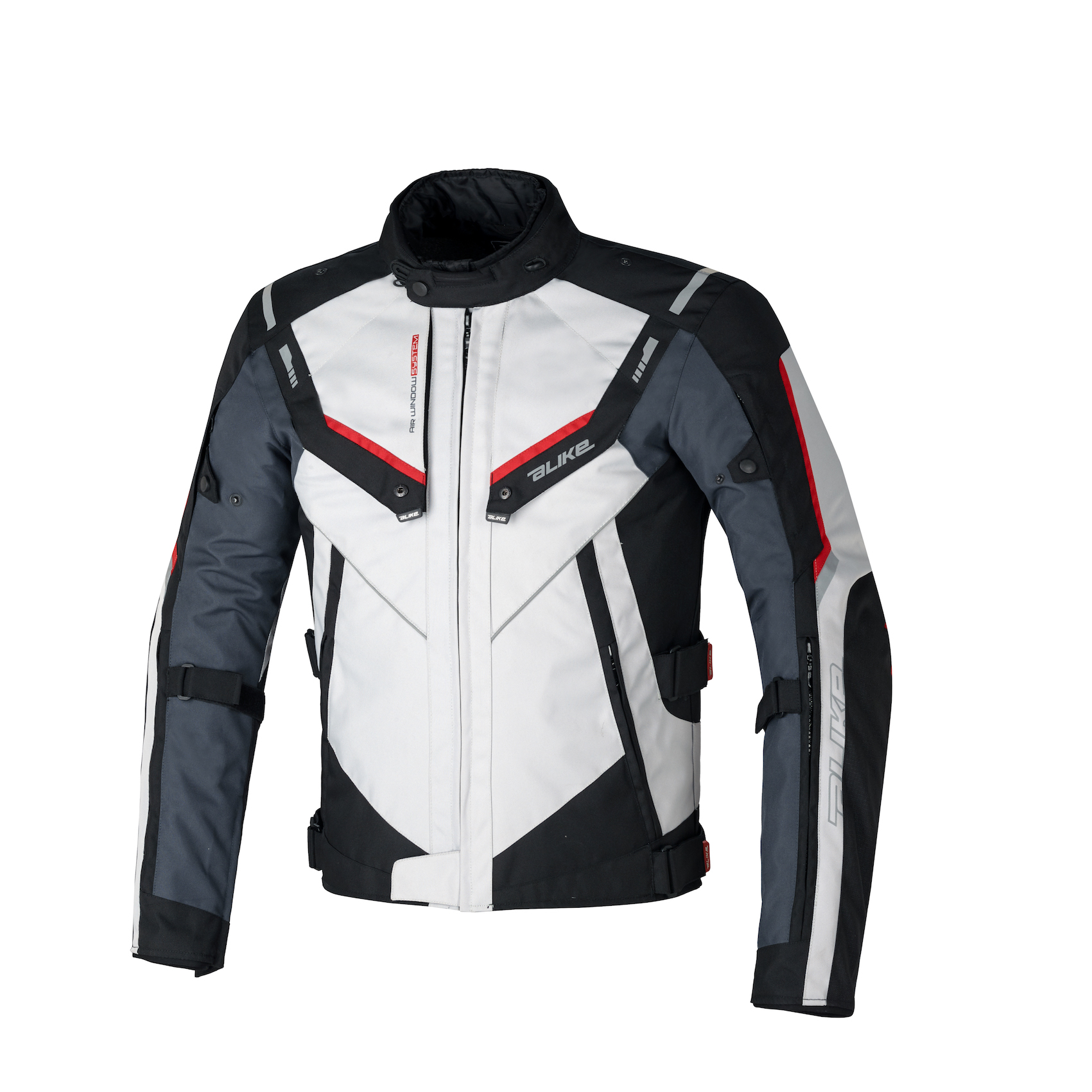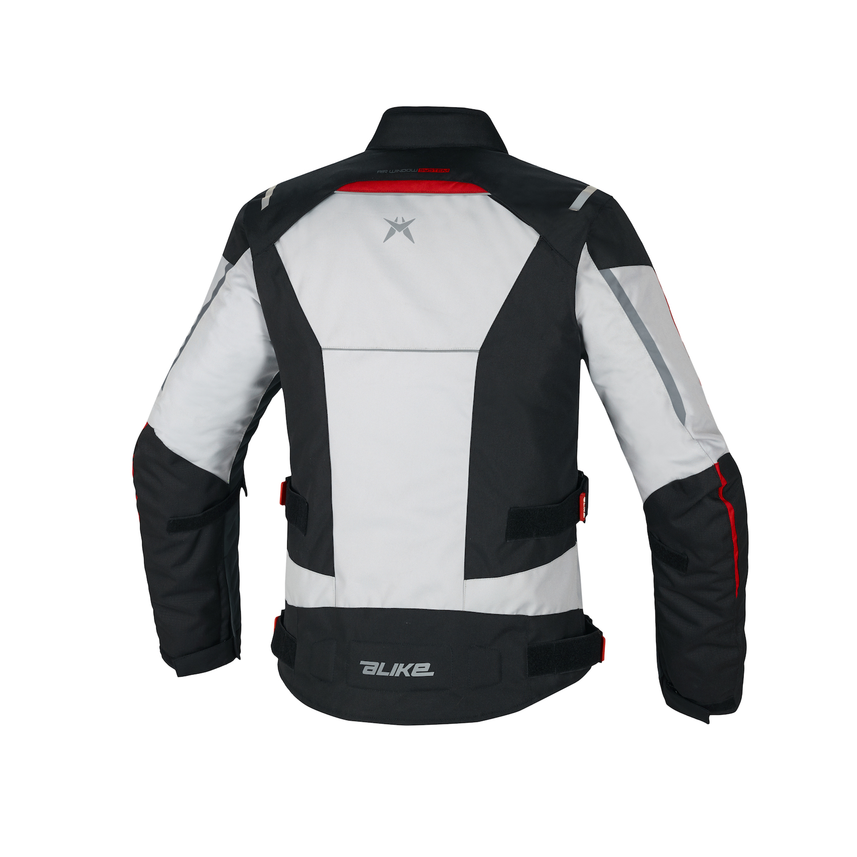La protezione del motociclista è affidata a protezioni interne su spalle e gomiti omologate CE EN1621-1 Livello 2, fornite di serie. La giacca è certificata secondo la norma prEN 17092:2018 in classe A e prevede la predisposizione per il paraschiena, con alloggiamento dedicato a più modelli della gamma Alike, come Esatech Evo Liv.2 e Netshape Evo Liv.2, acquistabili separatamente. Completano il pacchetto di sicurezza gli inserti di rinforzo in tessuto Ripstop su gomiti e avambracci e le zone reflex ad alta visibilità, utili nella guida notturna o in condizioni di scarsa luce.