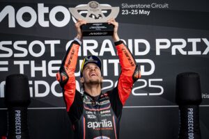 Al centro del 2025 Aprilia c’è stata la stagione d’esordio di Marco Bezzecchi sulla RS-GP25. Dopo una fase iniziale di adattamento, la svolta è arrivata nei test di Jerez, dove il pilota italiano ha trovato il feeling decisivo con la moto. Da quel momento è diventato uno dei riferimenti del campionato.