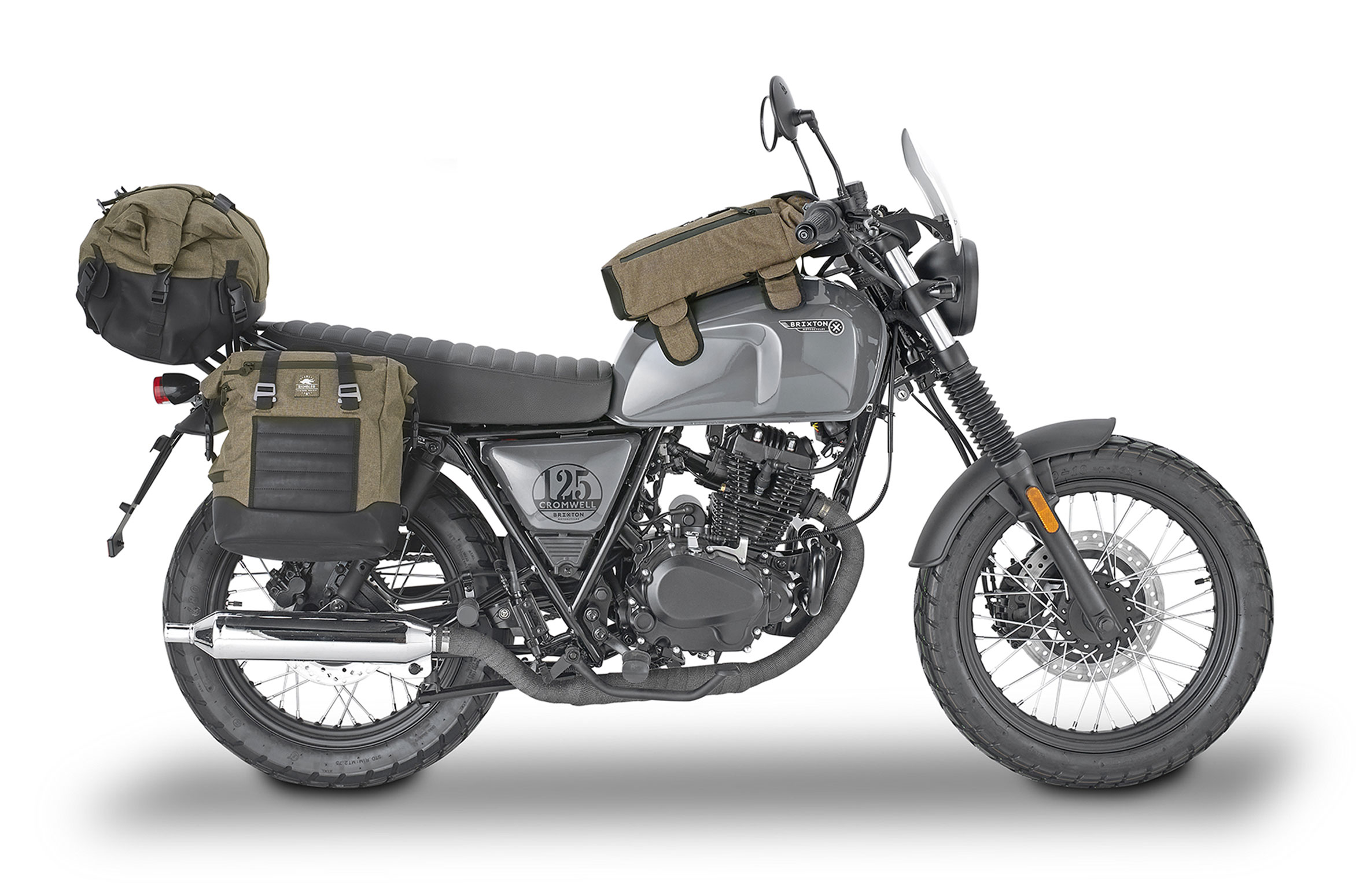 Per quanto riguarda il trasporto bagagli, Kappa propone sulla Cromwell 125 la linea Rambler, una gamma di borse morbide pensata per moto stradali dal sapore classico. Lo stile retrò della piccola Brixton si sposa con un design che richiama le attrezzature da viaggio di una volta, pur utilizzando materiali moderni.