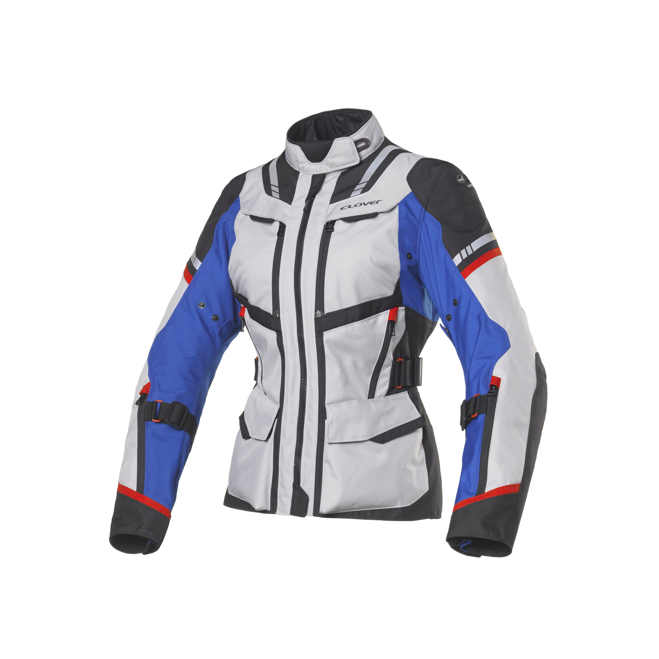 Clover interviene anche sulla ventilazione, pensata per affrontare estati sempre più torride. Sul torace compaiono due ampi pannelli apribili, affiancati da zip di ventilazione sulle maniche e da un’ulteriore apertura posteriore, così da creare un flusso d’aria efficace che attraversa la giacca quando tutti gli strati interni sono rimossi.