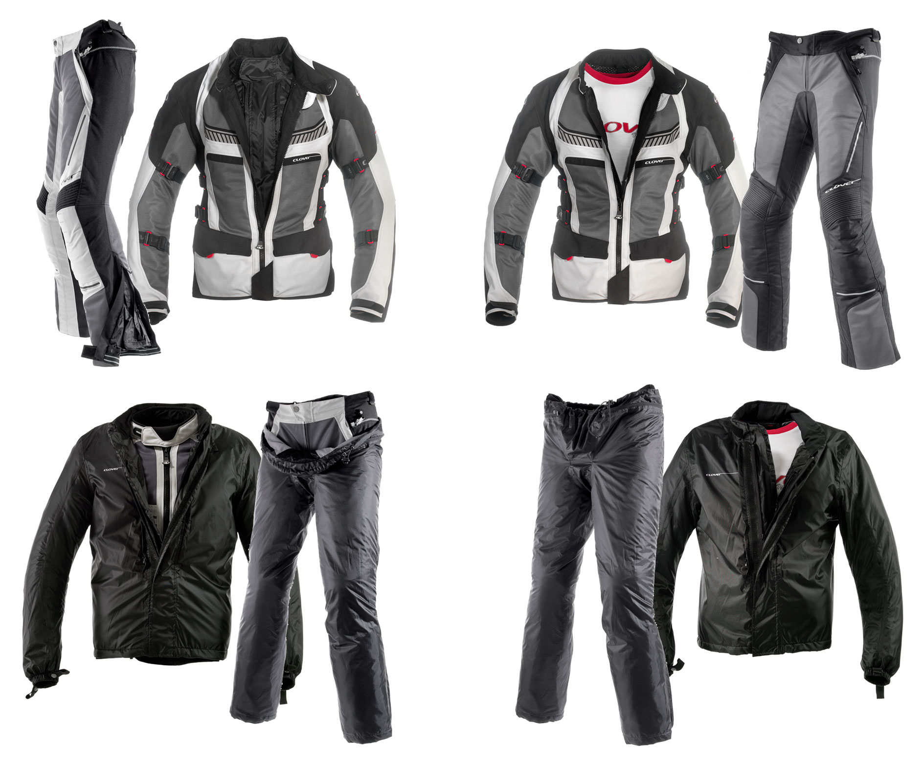 Clover definisce Ventouring un completo iper-ventilato per l’ampio uso di pannelli in rete ad alta tenacità, superiore alla media della categoria. Sulla giacca, questi pannelli interessano busto, maniche e schiena; sul pantalone l’aria scorre sulle cosce e arriva fino alla zona posteriore delle caviglie, favorendo il comfort anche nelle giornate più calde.