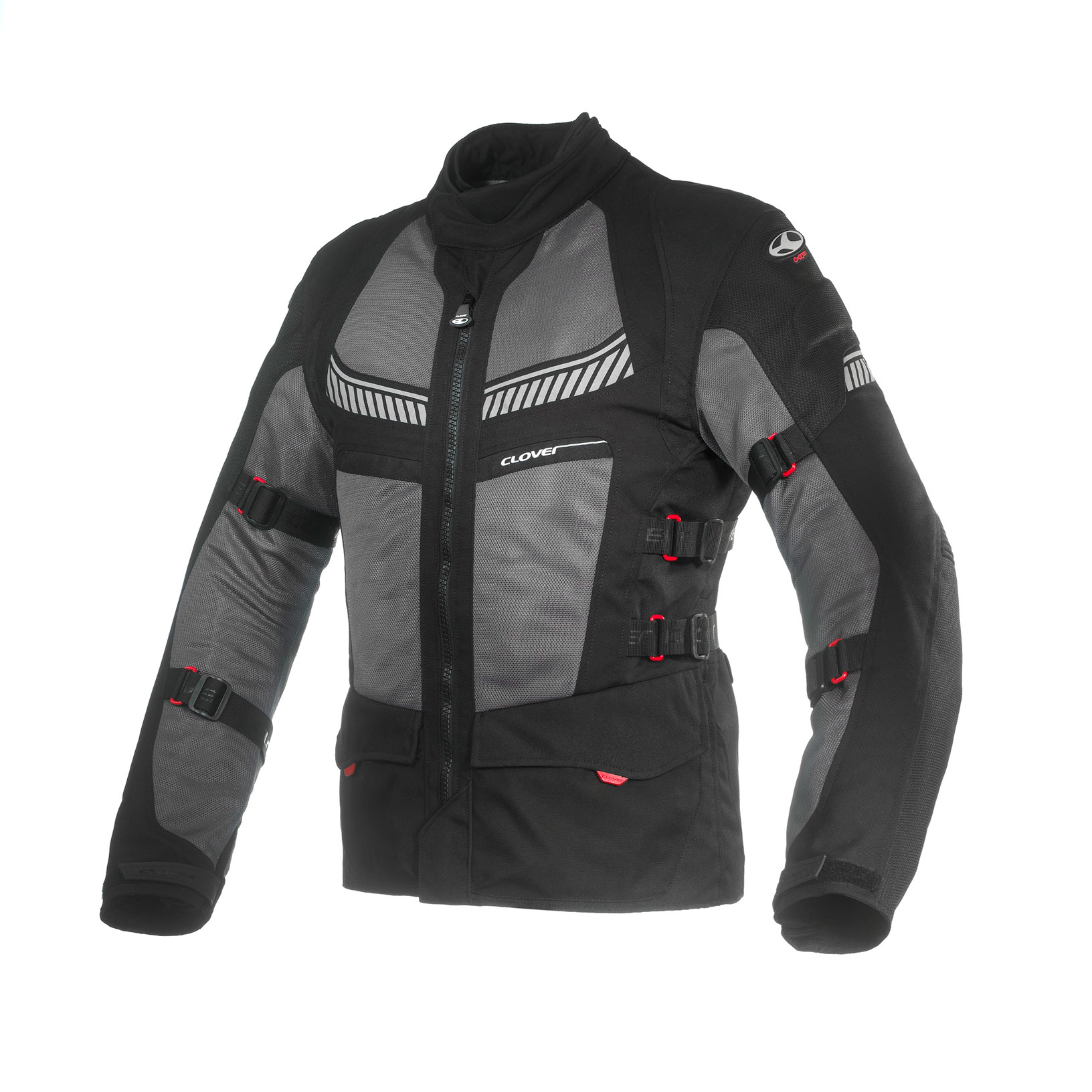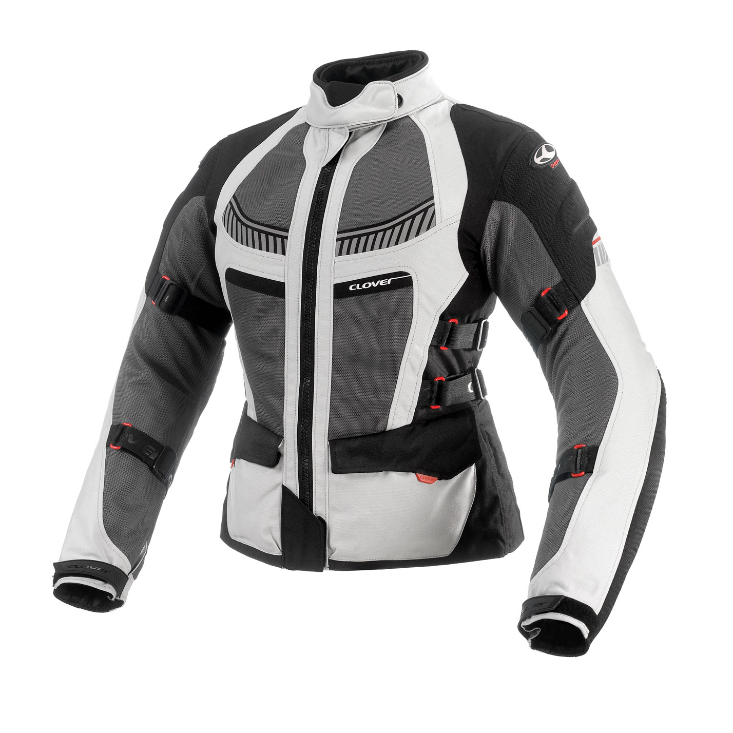 Elemento distintivo dell’offerta Clover è la predisposizione della giacca per il dispositivo Airbag Kit Out, acquistabile come optional. Si tratta di un airbag esterno integrabile alla giacca, omologato CE EN 1621-4 di livello 2 e accreditato come primo airbag per motociclisti omologato con questo standard. Il sistema, a comando meccanico, dichiara un tempo di attivazione di 0,08 secondi, risultando tra i più rapidi della sua categoria, ed è indicato come 6,4 volte più protettivo di un normale paraschiena di livello 2, con drastica riduzione dell’energia d’impatto trasmessa.