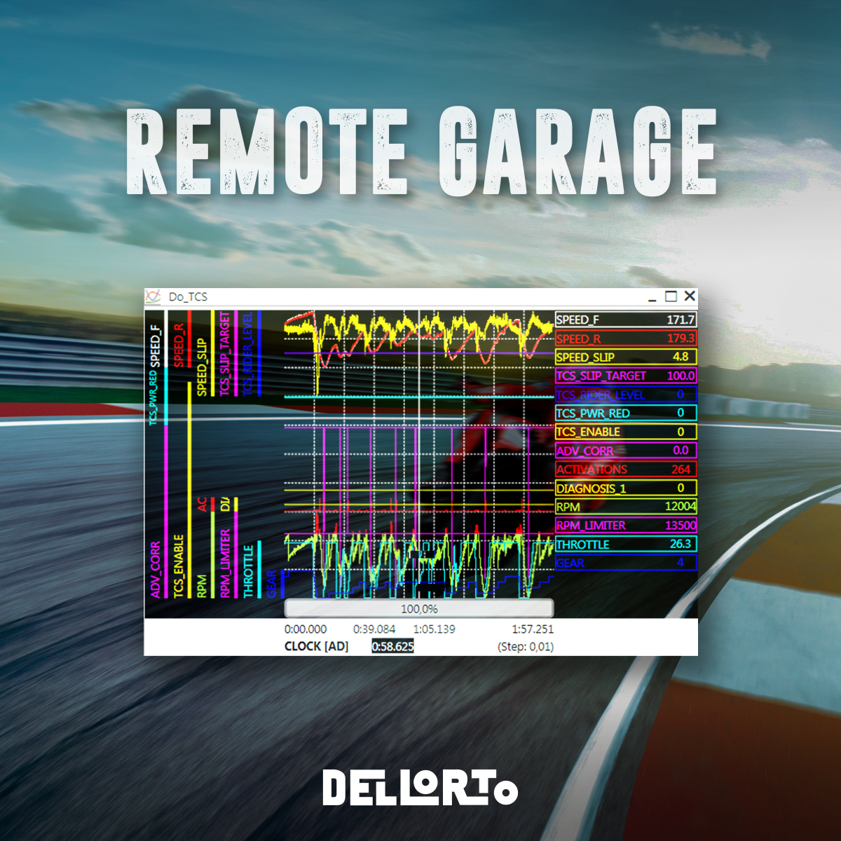 L’elemento centrale del nuovo approccio è l’utilizzo di una ECU virtuale, resa possibile da una soluzione software sviluppata internamente da DELLORTO e già impiegata da anni come alternativa alla centralina fisica. A partire dai file di acquisizione dati generati in pista, i tecnici possono ricreare l’ambiente operativo della centralina su una piattaforma virtuale, analizzando parametri e comportamenti del sistema come se fossero presenti nel box.