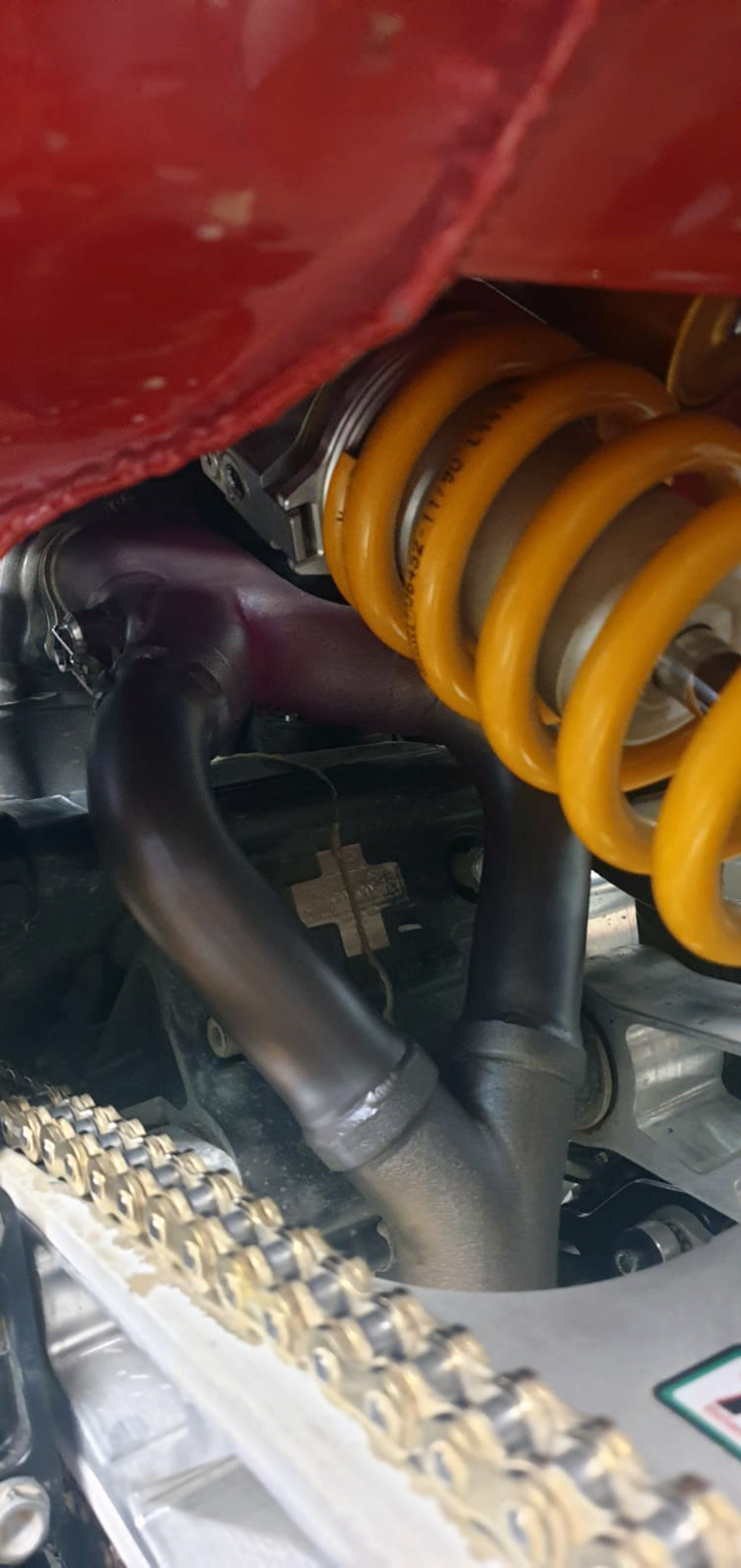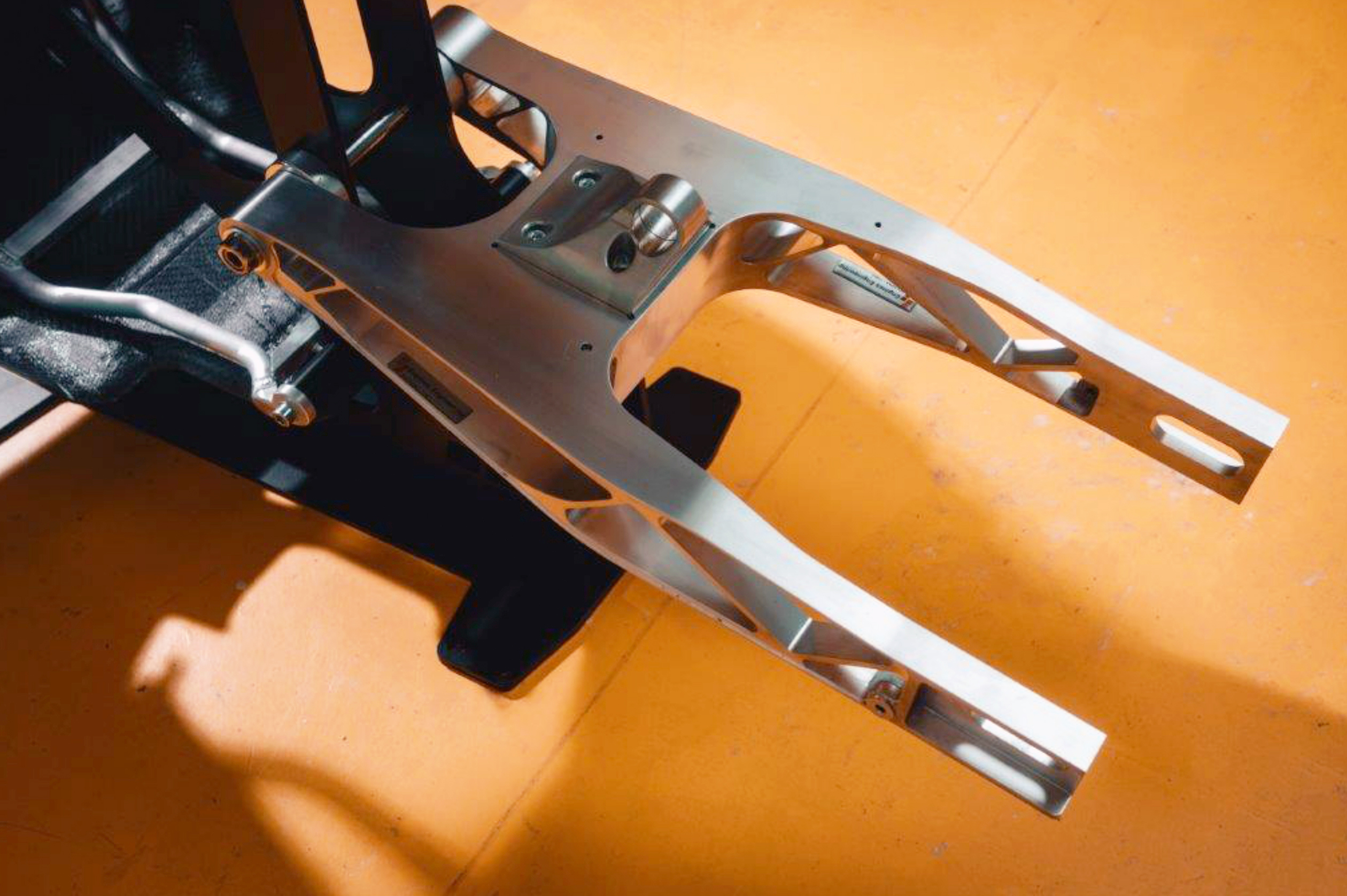 Il lavoro di sviluppo ha interessato profondamente la parte posteriore della moto. Una delle innovazioni più rilevanti è il forcellone in alluminio ricavato dal pieno, una soluzione inedita su questa tipologia di moto che ha permesso di risparmiare quasi 900 grammi rispetto al componente di serie, rappresentando una scelta tecnica di rottura.