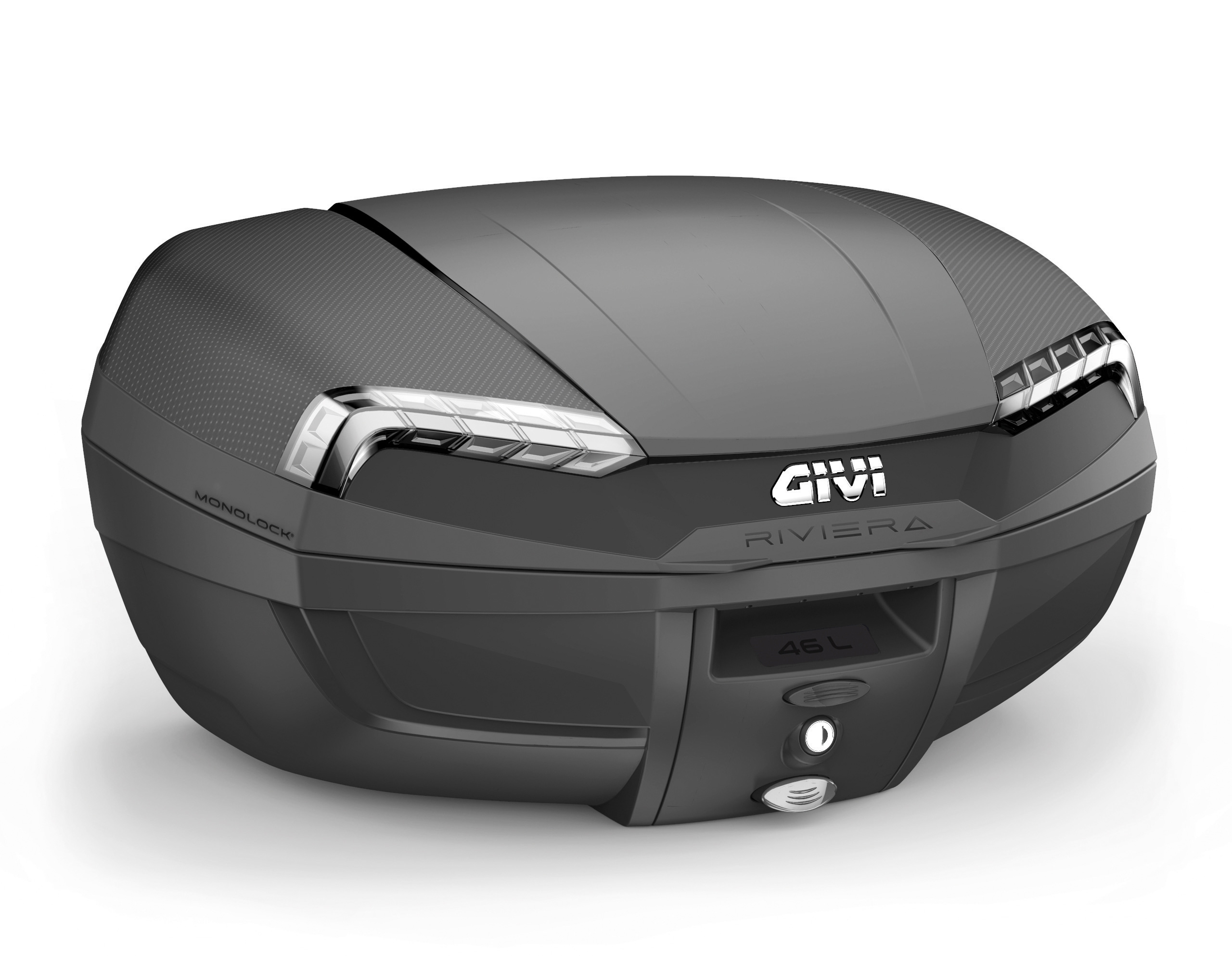 GIVI amplia la propria offerta con il nuovo bauletto E46 Riviera, top di gamma della linea Monolock e tra i prodotti più avanzati del catalogo urbano del marchio. Con una capacità di 46 litri, il Riviera può ospitare due caschi modulari ed è pensato in particolare per scooter e moto di piccola e media cilindrata. Il prodotto è realizzato interamente in Italia.