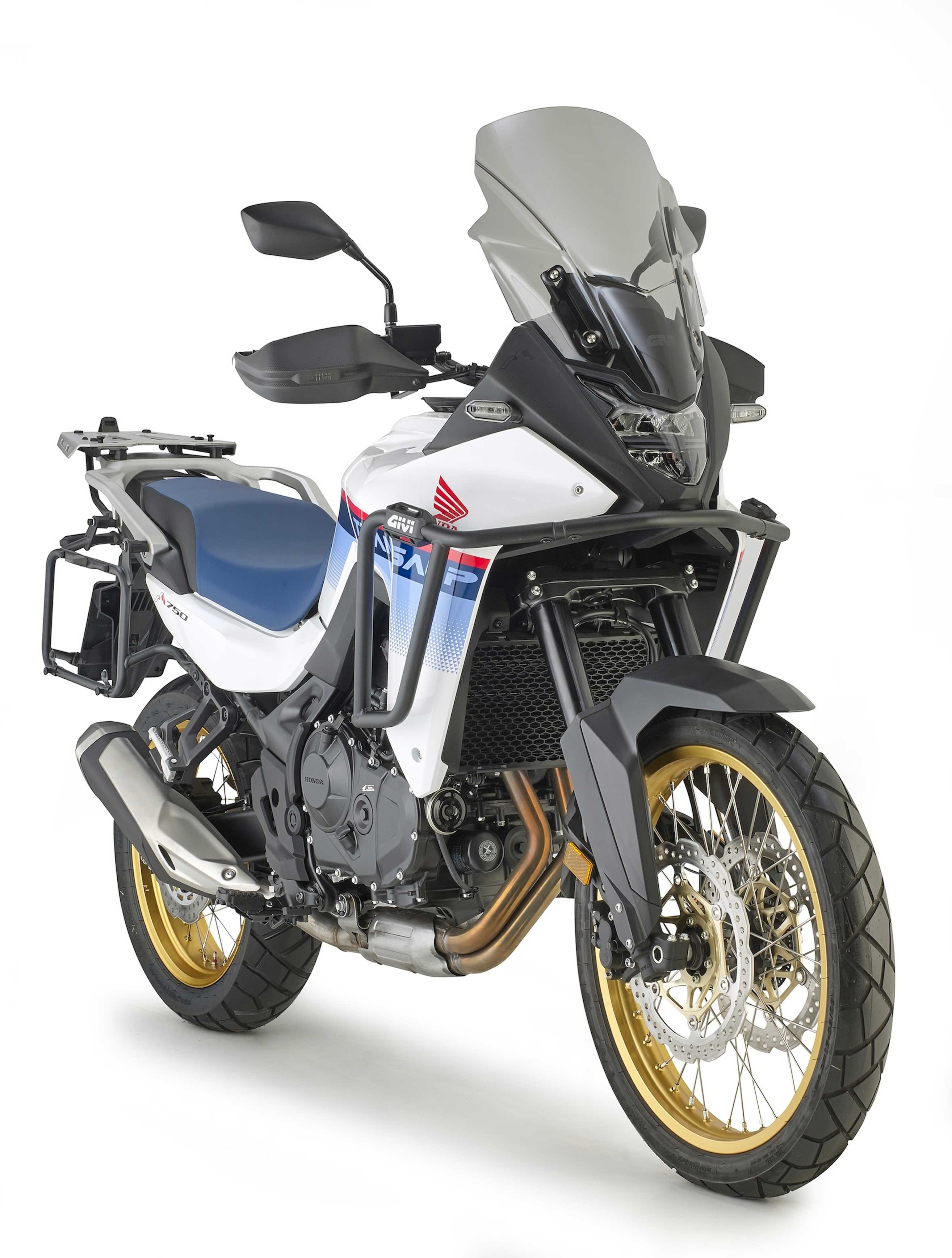 L’allestimento Givi dedicato alla Honda XL750 Transalp 2023 conferma la vocazione della moto al viaggio a 360 gradi, con una dotazione pensata per chi alterna turismo su asfalto e uscite in fuoristrada, senza rinunciare a capacità di carico, protezione e funzionalità.