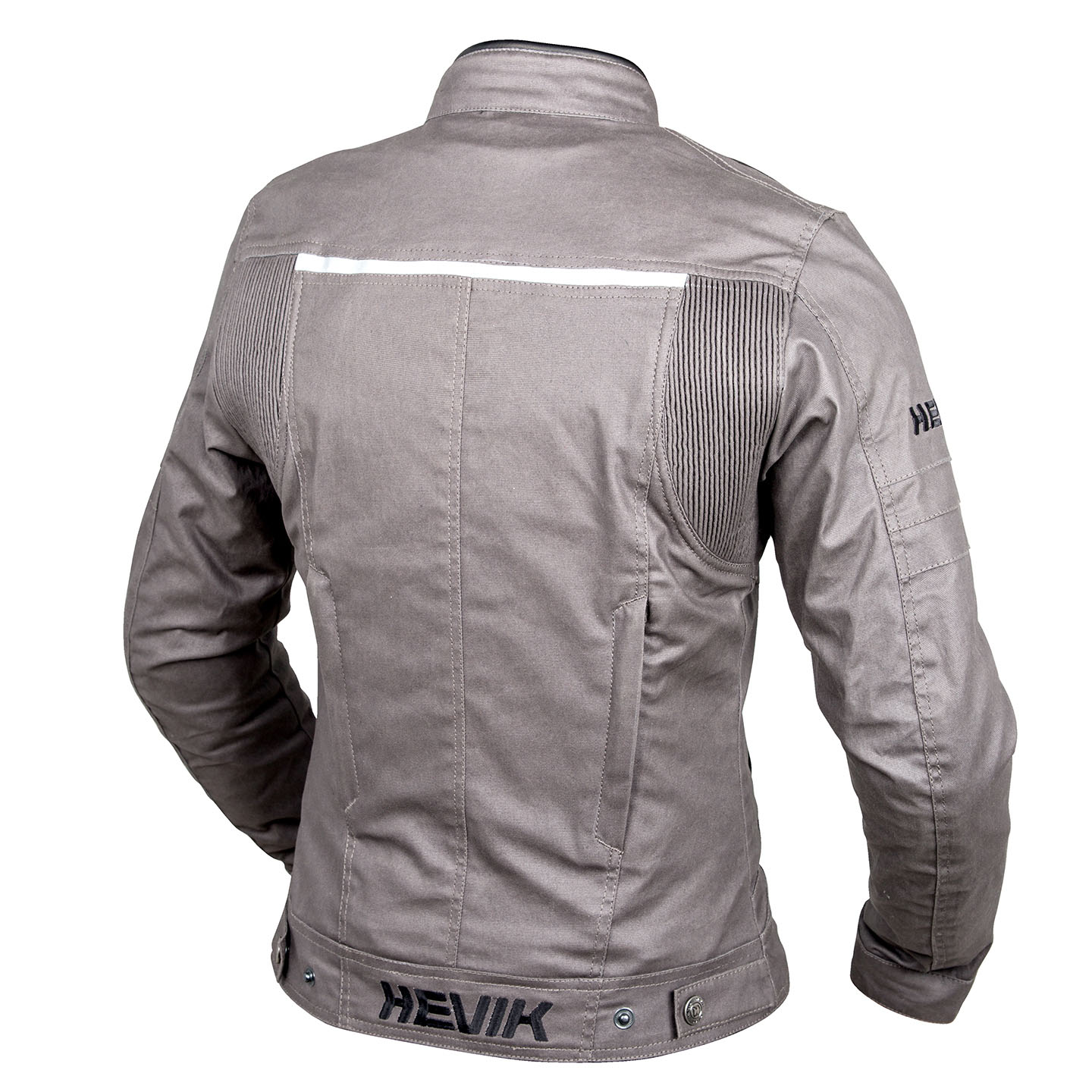 Elemento distintivo della Hevik Madsen è l’uso del wax cotton per il tessuto esterno. Questo materiale viene ottenuto impregnando il tessuto con paraffina a base di cera, una lavorazione classica rivisitata per un impiego motociclistico. Il risultato è una superficie dall’aspetto leggermente vissuto, resistente e più protettiva rispetto a un normale cotone.