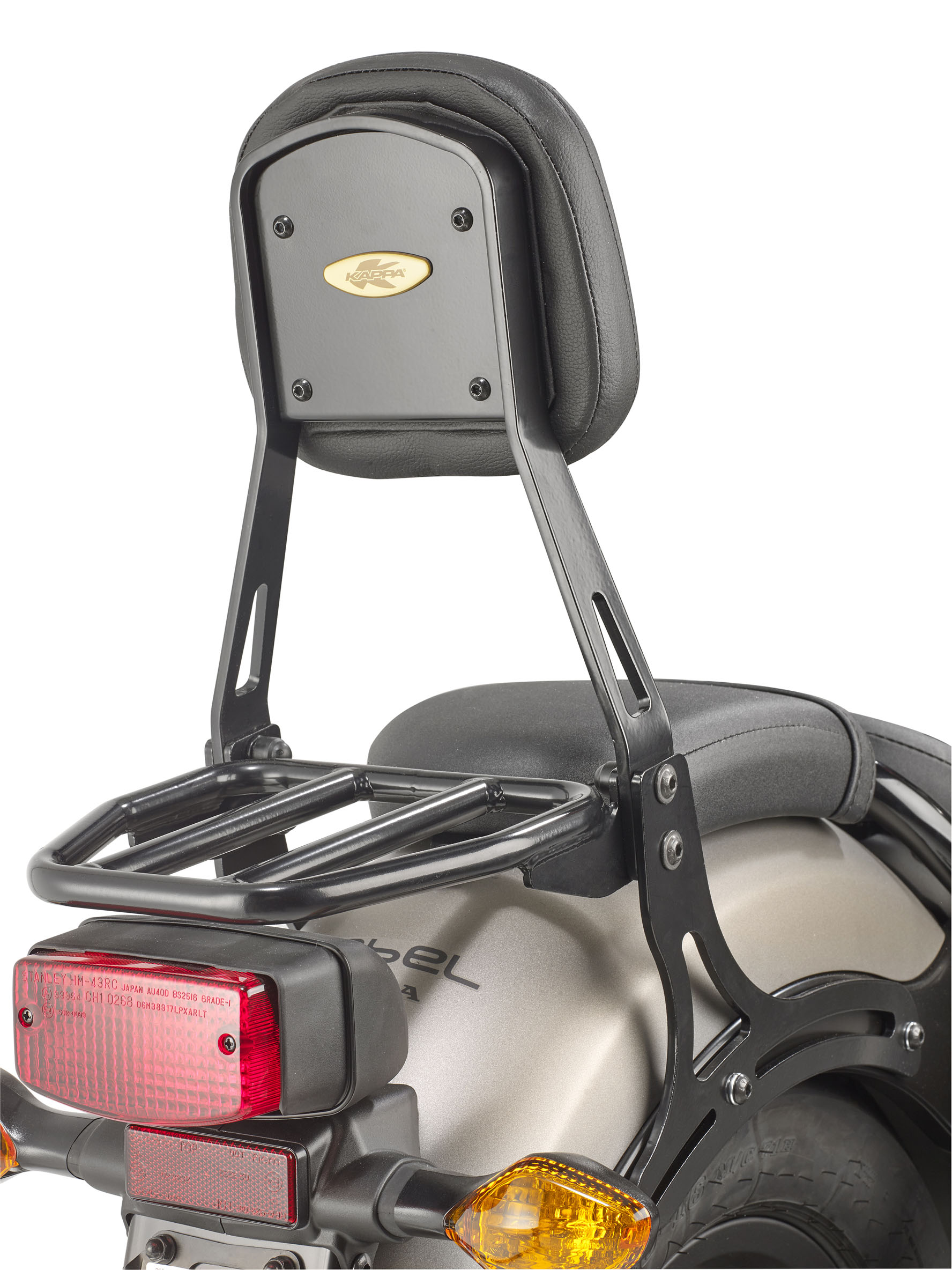 La CMX Rebel nasce con un’impostazione piuttosto spartana, pensata più per il biker solitario che per il turismo in coppia. Kappa interviene partendo proprio dal comfort, introducendo uno schienalino dedicato al passeggero che cambia radicalmente l’accoglienza a bordo. Il KTS1160B è un elegante sissy bar nero completo di piccolo portapacchi integrato, studiato per migliorare il sostegno della schiena nelle percorrenze medio-lunghe e rendere più fruibile il posto posteriore.