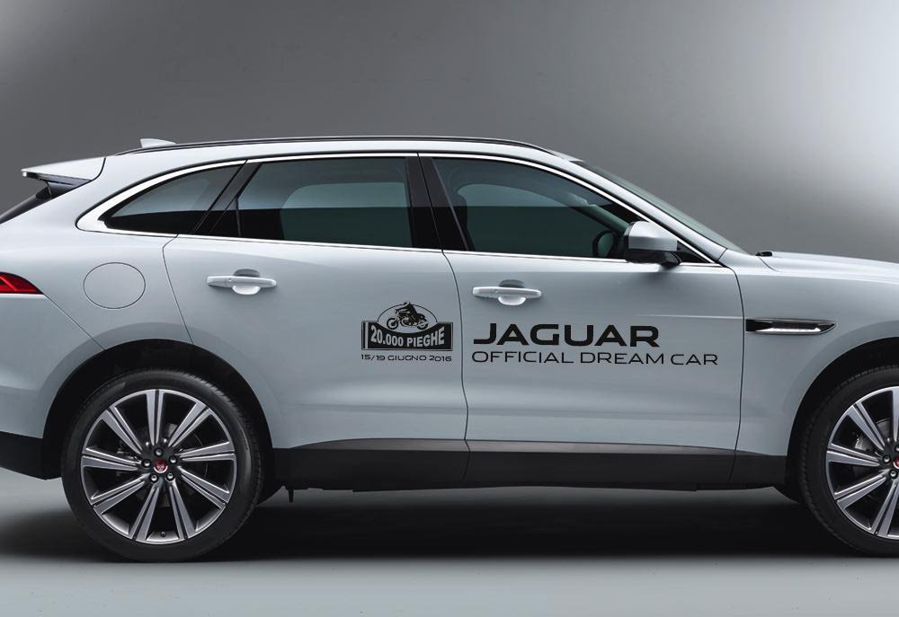 Per la prima volta Jaguar affianca ufficialmente la 20.000 Pieghe in qualità di Official Dream Car, inserendosi nel gruppo di marchi che sostengono la manifestazione. Il brand britannico sarà presente con tre F-Pace, il primo crossover della casa, pensato per offrire agilità e reattività tipiche del marchio insieme a una fruibilità quotidiana da utilizzo a 360 gradi.