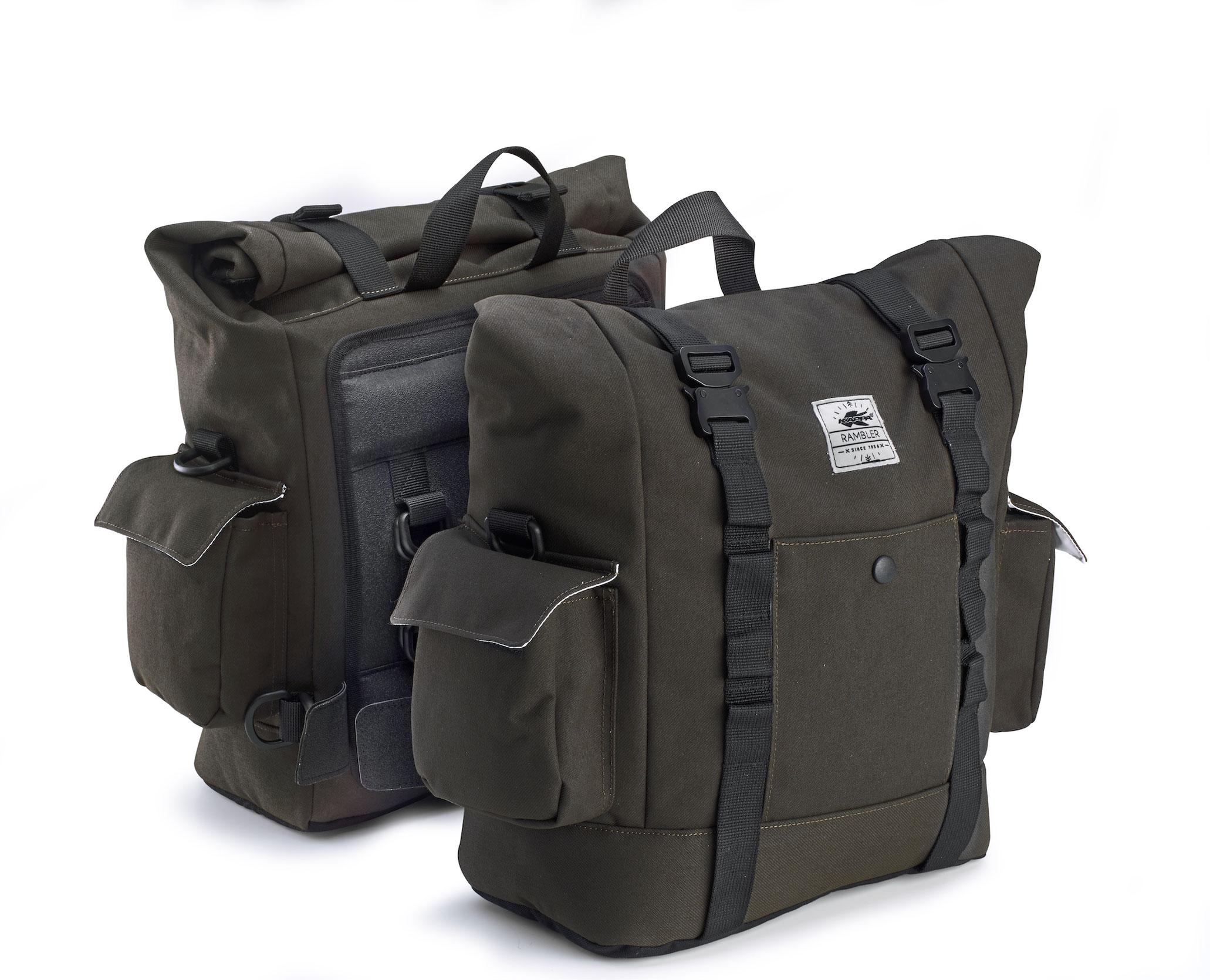 Le borse sono proposte in colore verde scuro, in linea con l’identità estetica della famiglia ECO RAMBLER e con un look che richiama il mondo delle special, delle scrambler e delle moto dal sapore più heritage.