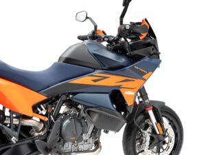 Grazie al catalogo KTM PowerParts, la 890 SMT può essere facilmente configurata come tourer a medio raggio. Tra gli accessori pensati per il viaggio spiccano: