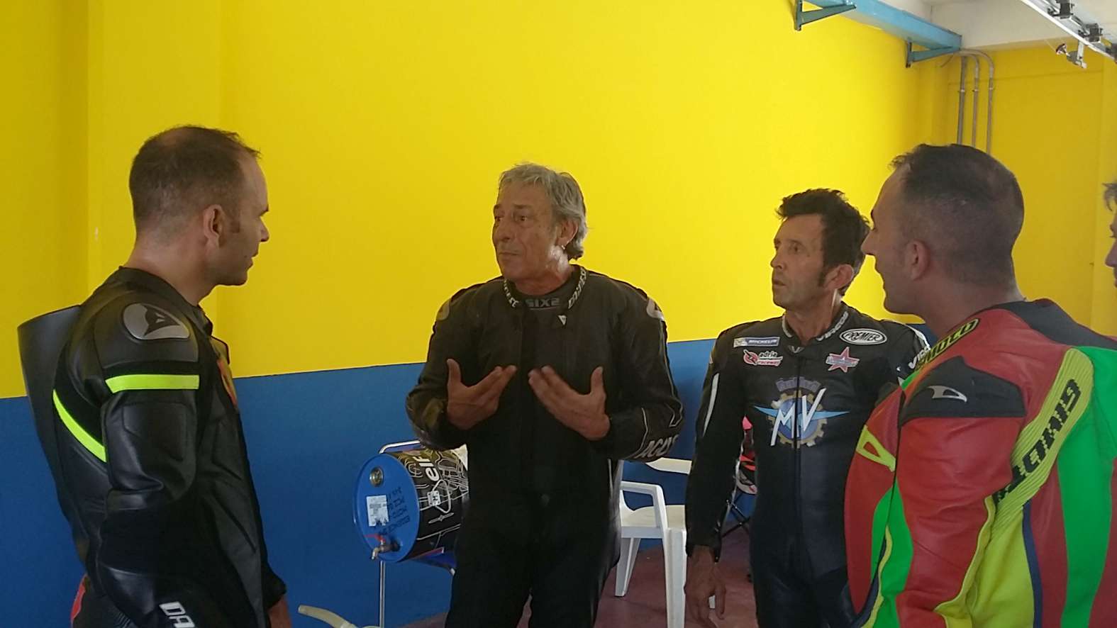 L’evento è stato impreziosito dalla presenza di figure storiche e volti noti del paddock. Marco Lucchinelli, affiancato da Fausto Ricci e dalle loro MV, ha svolto un doppio ruolo di guida in pista e riferimento tecnico per gli appassionati, accompagnando diversi partecipanti e offrendo consigli di guida. A proprio agio nonostante il caldo, Lucchinelli ha spinto più volte al limite, confermando il pieno sostegno offerto dalle coperture e chiudendo la domenica con un burn out di gomma anteriore che ha lasciato il segno tra gli spettatori.