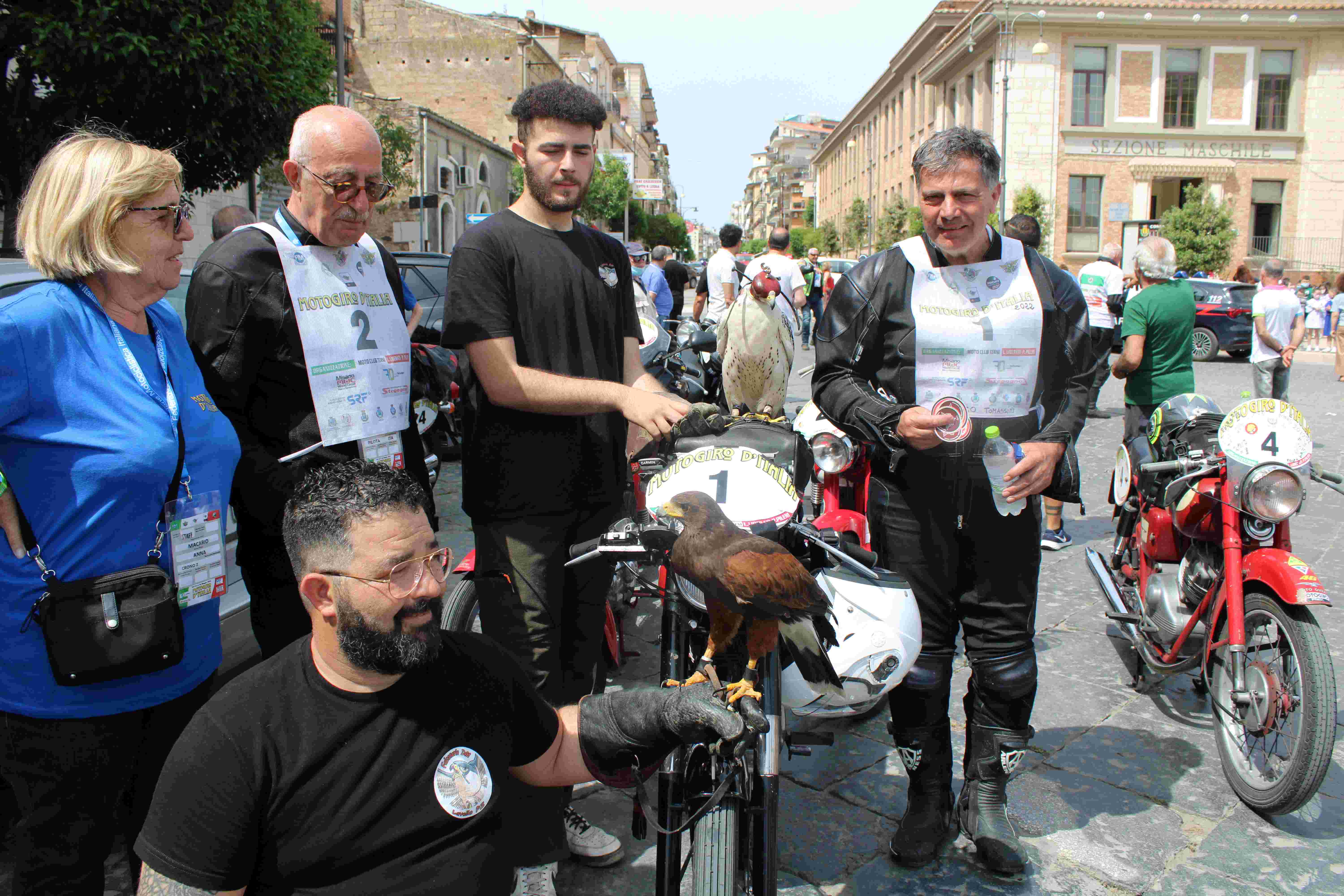 Emozionante anche il passaggio a Lavello, con tutte le scolaresche in piazza ad applaudire i concorrenti e uno spettacolare saluto finale: il volo di una poiana sudamericana e di un falco siberiano, addestrati dal falconiere Donato Massari, custode di una tradizione secolare che nella città risale ai tempi dei Normanni.
