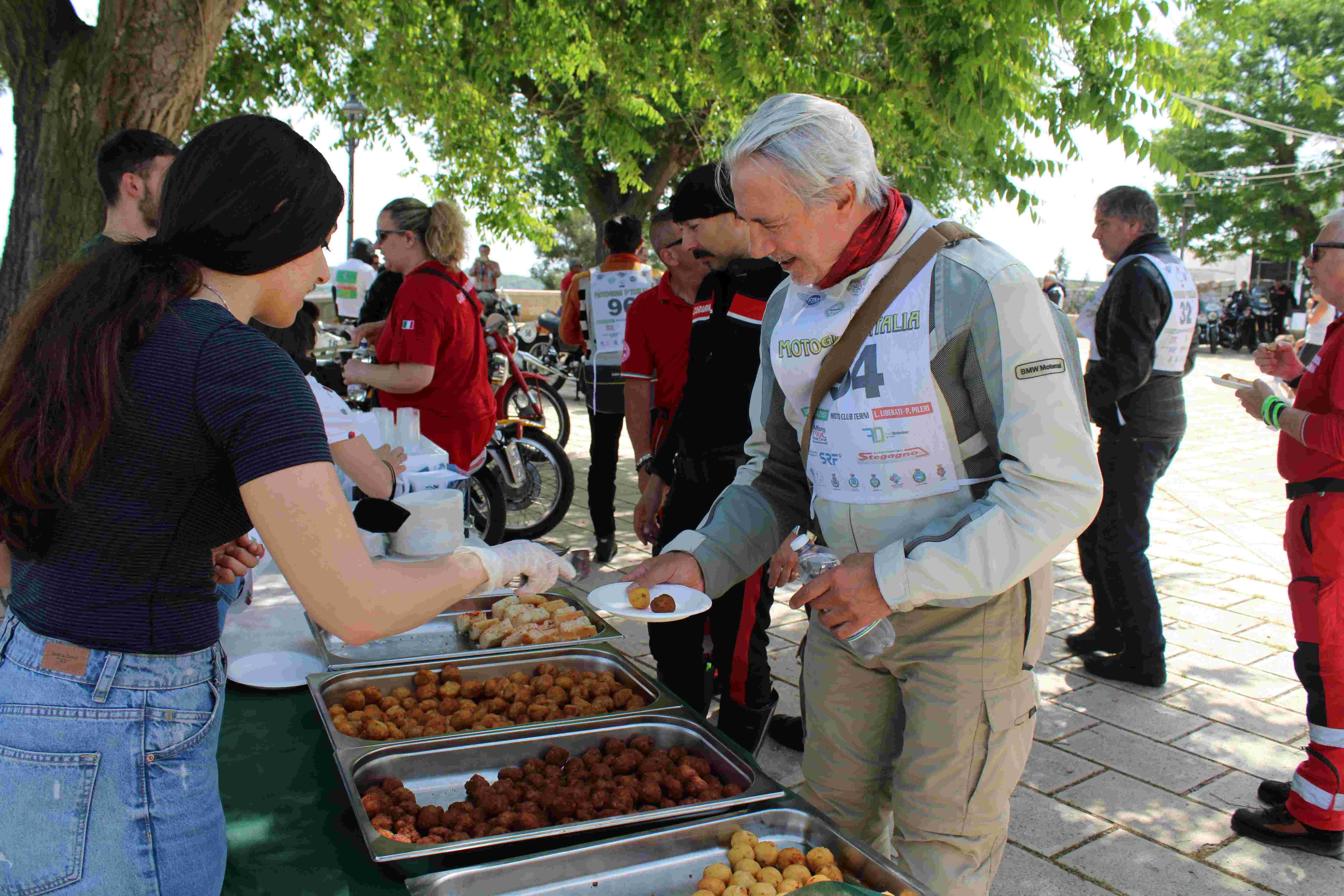 A Palagianello, in memoria di Tonino Capito, simbolo per anni del motociclismo tarantino, l’intera città, guidata dalla sindaca, ha salutato i partecipanti con un grande buffet e omaggi enogastronomici per tutti.
