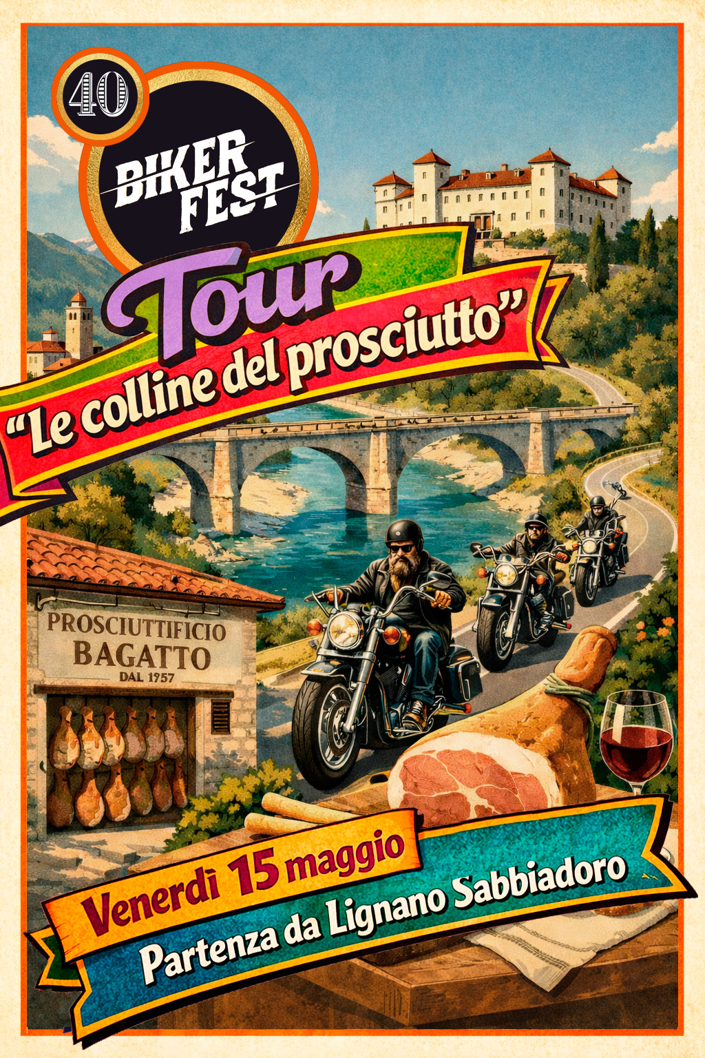 I MotoTours Biker Fest propongono itinerari guidati per scoprire Lignano, le colline del prosciutto e i fiumi del Friuli.