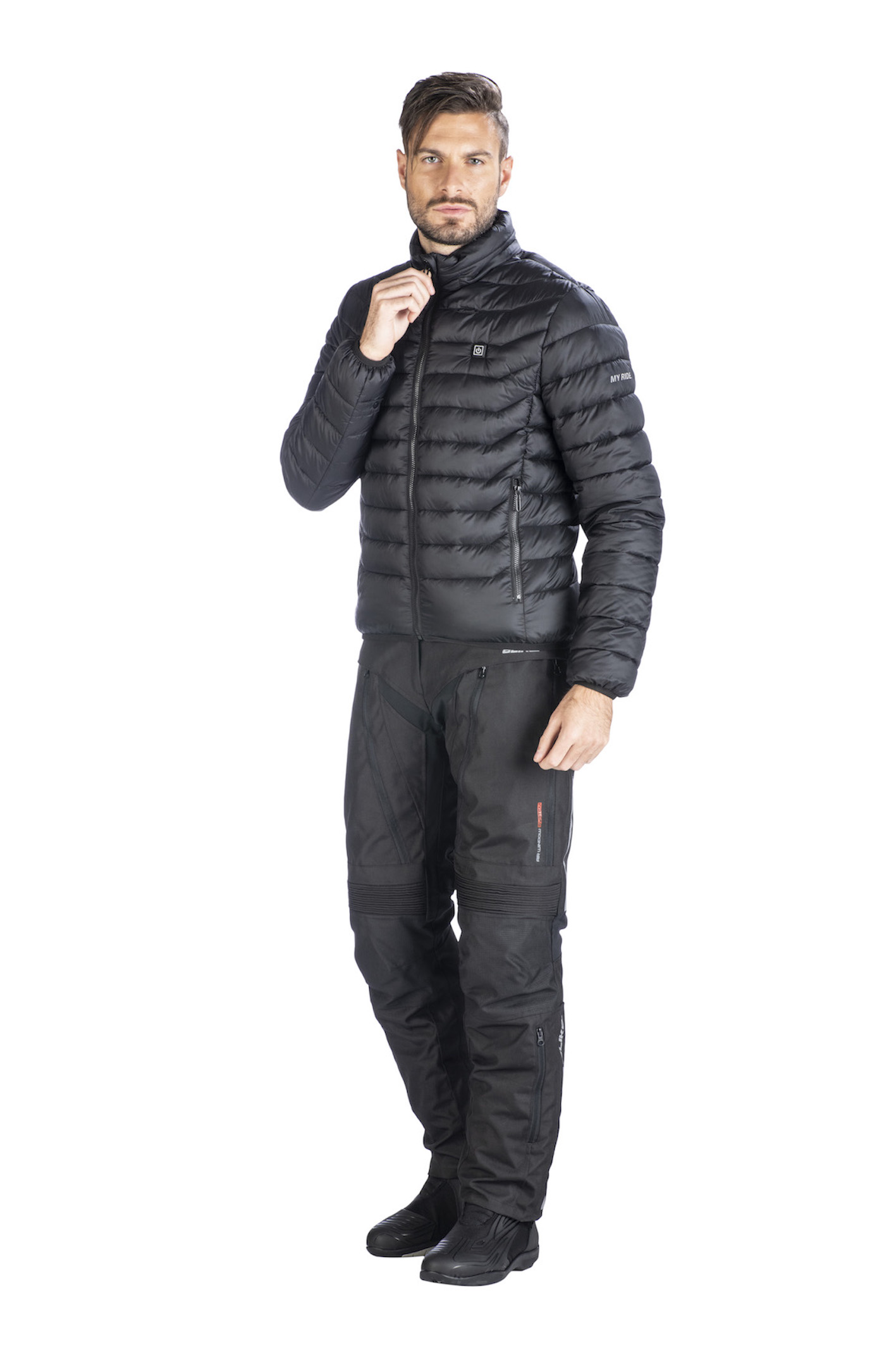 Destinati a motociclisti, scooteristi e a chi pratica attività all’aperto, i sottopantaloni Warm-Me sono realizzati in poliestere micro-pile con effetto antivento e coibente. La struttura ultra leggera, abbinata a una maglina soft-touch, li rende discreti sotto i pantaloni in tessuto e confortevoli anche per un utilizzo prolungato. Sono disponibili in colore nero nelle versioni Man (taglie dalla S alla XL) e Lady (taglie dalla S alla L). - Piumino e gilet Thermo-fire by My Ride