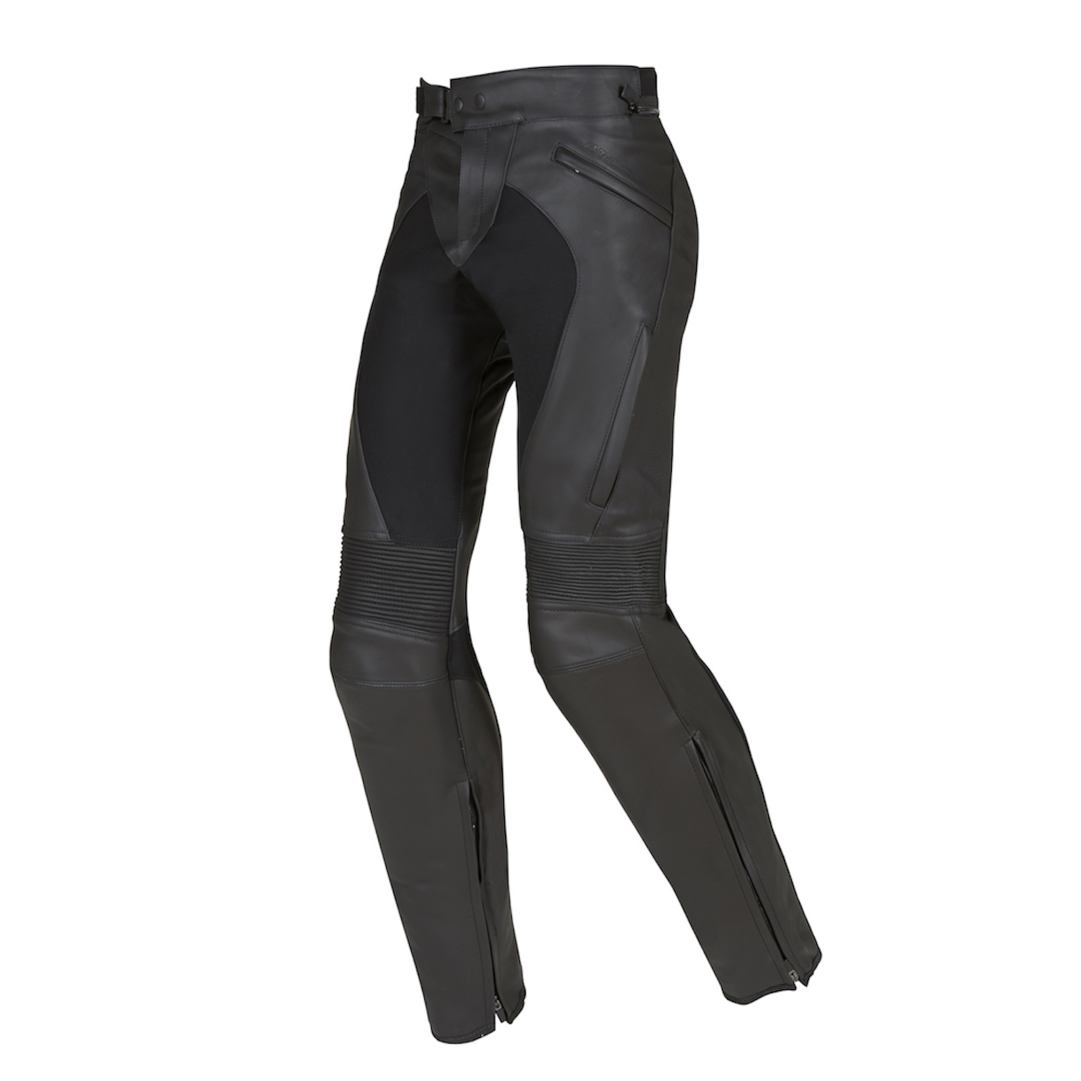 Il pantalone Superskin interpreta invece lo stesso concetto di protezione in chiave più vicina al mondo . Il look è meno estremizzato, ma la costruzione resta tecnica: pelle bovina morbida da 1,2/1,3 mm con finitura Drop/Safe e certificazione in Classe AA. È proposto in versione uomo e donna, entrambi in colore nero.