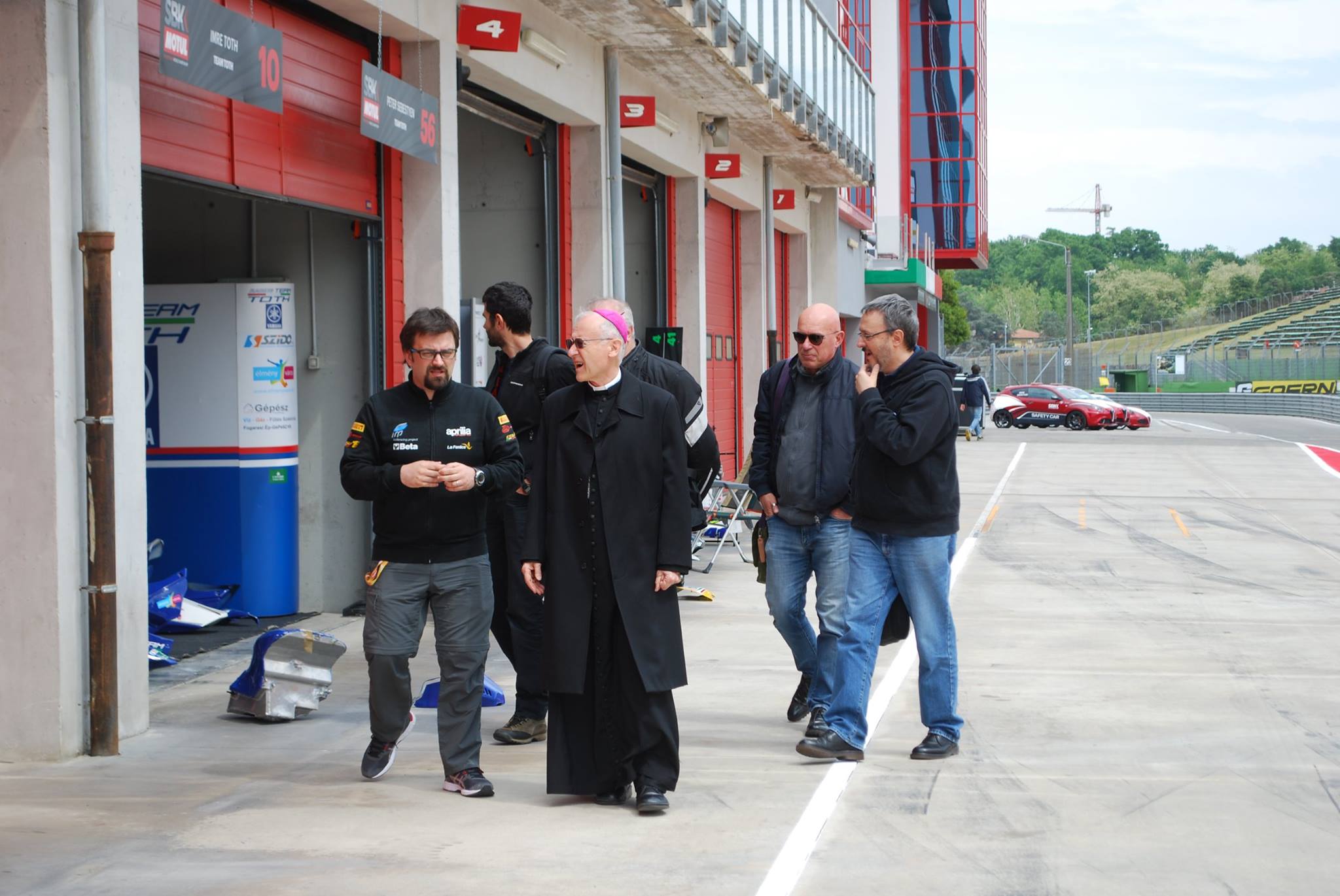 Non è mancato il passaggio nei box dei team, dove il vescovo e i sacerdoti hanno potuto confrontarsi con alcuni volti chiave del Mondiale Superbike. In particolare, il gruppo si è soffermato a lungo con Giampiero Sacchi, titolare del Team Iodaracing, squadra che schiera in pista Lorenzo Savadori e Alex De Angelis.