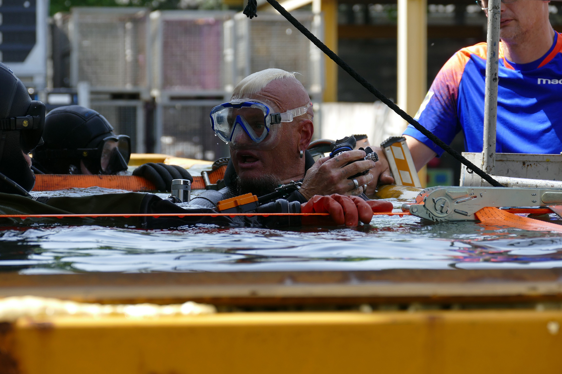 Resosi conto della gravità della situazione, il subacqueo ha dato immediatamente l allarme bussando con forza contro la parete interna del contenitore di ferro per richiamare l attenzione della squadra all esterno. Tuttavia, la rimozione del lucchetto e della catena che sigillavano il contenitore ha richiesto alcuni istanti, preziosi in un contesto del genere.