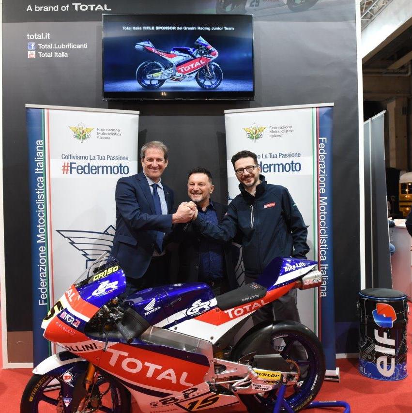 La presentazione ufficiale della moto, che rappresenta il consolidamento del rapporto tra Total Italia e Gresini Racing iniziato lo scorso anno, ha confermato la volontà delle due realtà di investire sui campionati propedeutici per far crescere la nuova generazione di piloti.