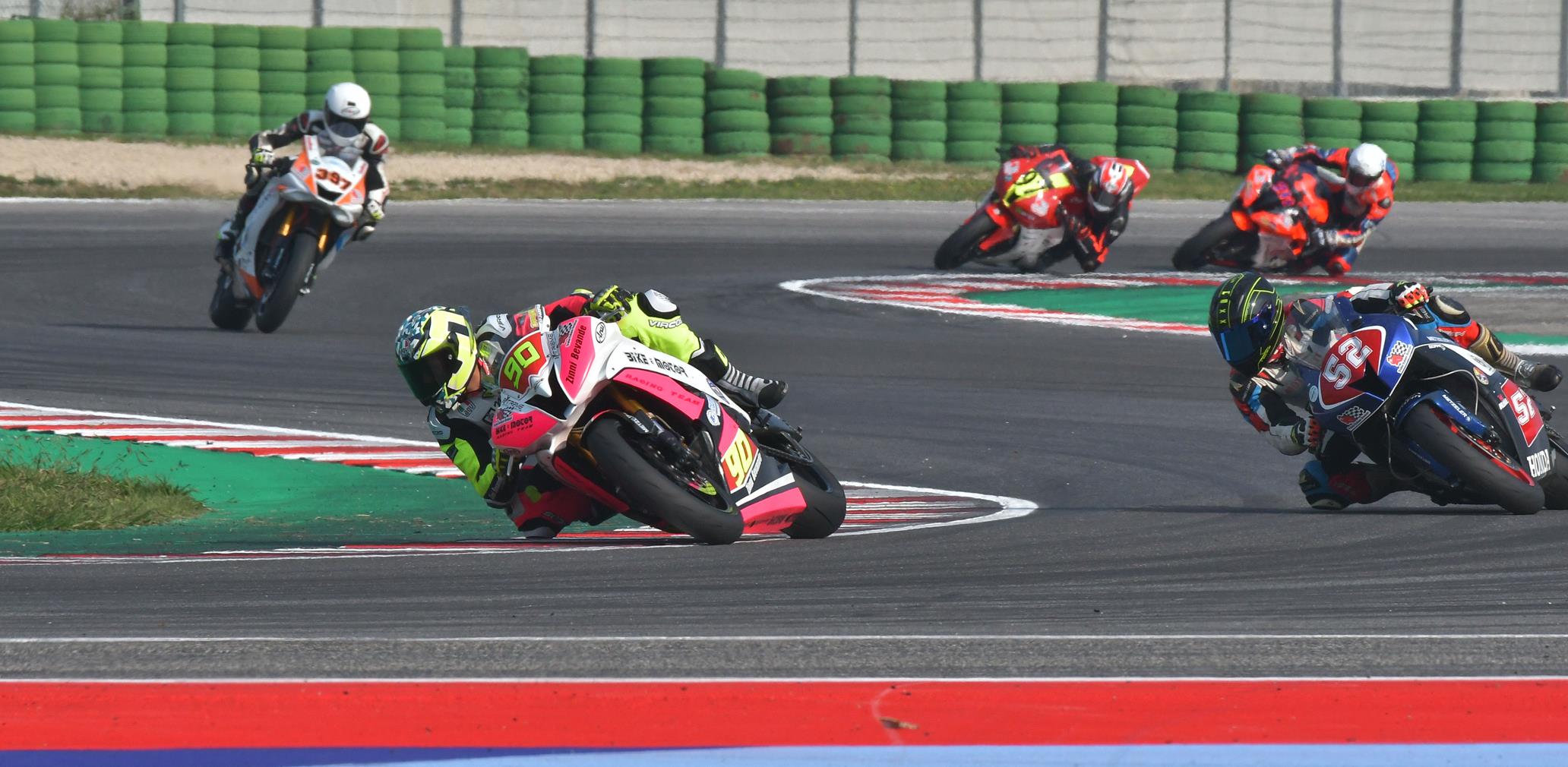 La sfida più attesa era quella della 1000 Pro, con Alessandro Rossi e Tommaso Pinna (Yamaha) separati da pochi punti in classifica. Pur in un clima di rispetto reciproco tra i due principali contendenti, la gara ha rispettato le aspettative con un confronto teso e ricco di colpi di scena. A inserirsi nel gruppo di testa ci hanno pensato i marchigiani Tiziano Traini e Fabio Gaspari (entrambi BMW), autori di un ottimo avvio che ha reso ancora più delicato il compito dei pretendenti al titolo.