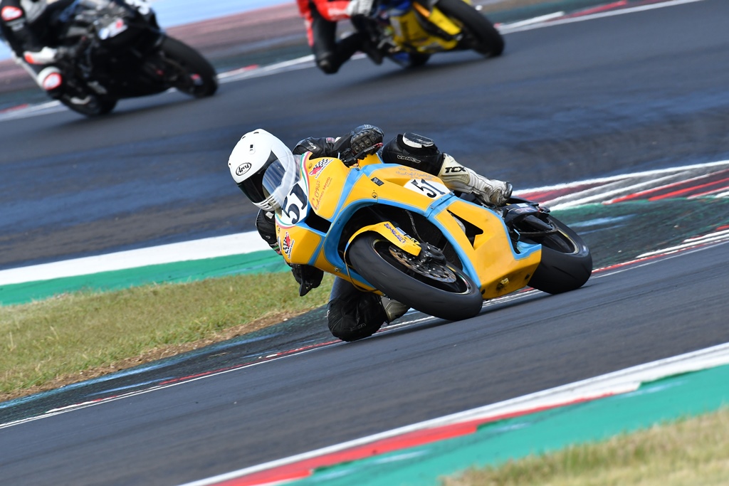 Nella 1000 Base i tre piloti della prima fila si confermano riferimenti della categoria. Il poleman Tommaso Cherici (Yamaha) mantiene la leadership in partenza, seguito dalle BMW di Christian Seghezzi e Marco De Santis. Il terzetto fa subito il vuoto, con Seghezzi che al terzo giro trova l’attacco decisivo per prendersi la testa della corsa.