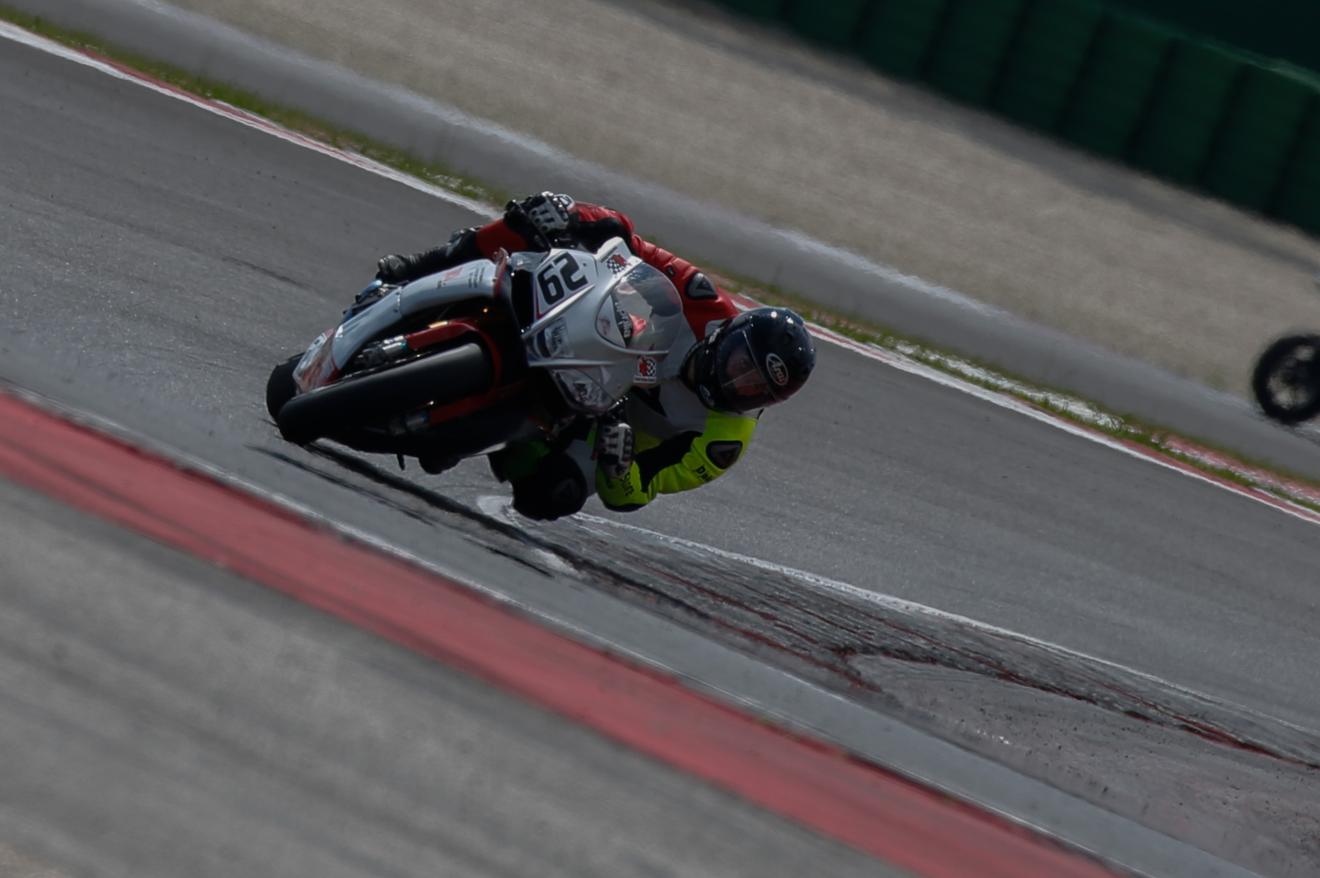Carboni brucia tutti allo start e guida il primo passaggio, ma Gandini trova il varco e prova ad allungare. Dietro di loro lottano per il podio Cesare Amadori (Suzuki), Alessandro Avanzini (BMW) e Francesco Rigo (Ducati), autore del giro veloce in 1’46” netto e grande rimonta dopo una partenza complicata. Proprio Rigo, una volta portatosi sul podio virtuale, cade alla Misano 2 e abbandona la gara, lasciando campo libero al duello per la vittoria.