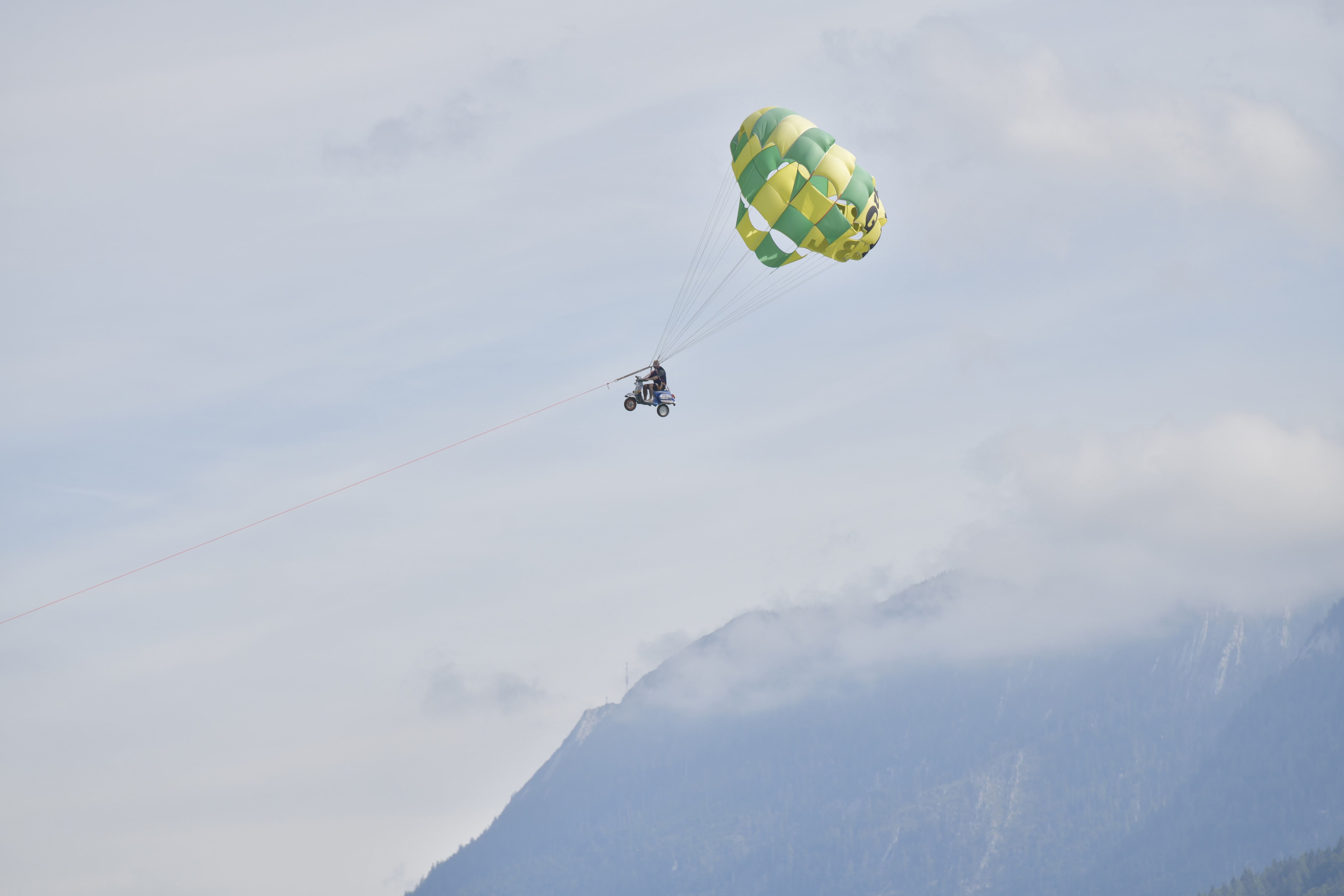 Vespa-kite a 75 metri sul Wolfgangsee: il record finisce con un crash