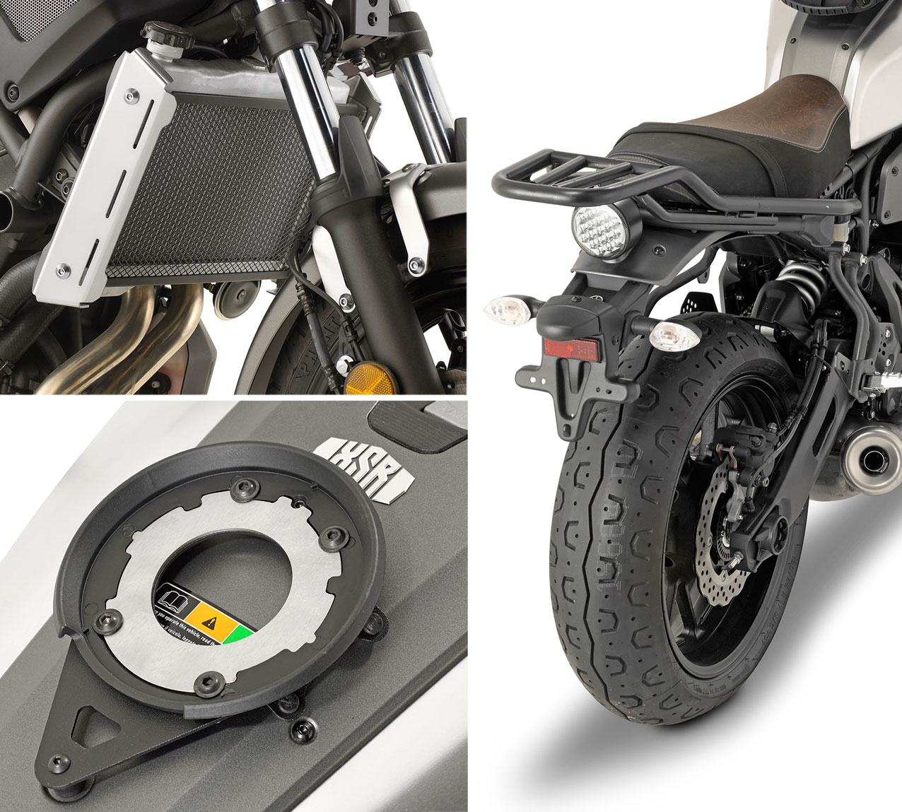 Per la Yamaha XSR900 GIVI riprende in gran parte questa impostazione, adattando gli attacchi e ampliando la sezione dedicata alla protezione. Anche in questo caso l’obiettivo è lo stesso: conservare il DNA sport heritage della moto, aggiungendo funzionalità e comfort per chi la vive tutti i giorni e nei viaggi a medio raggio.